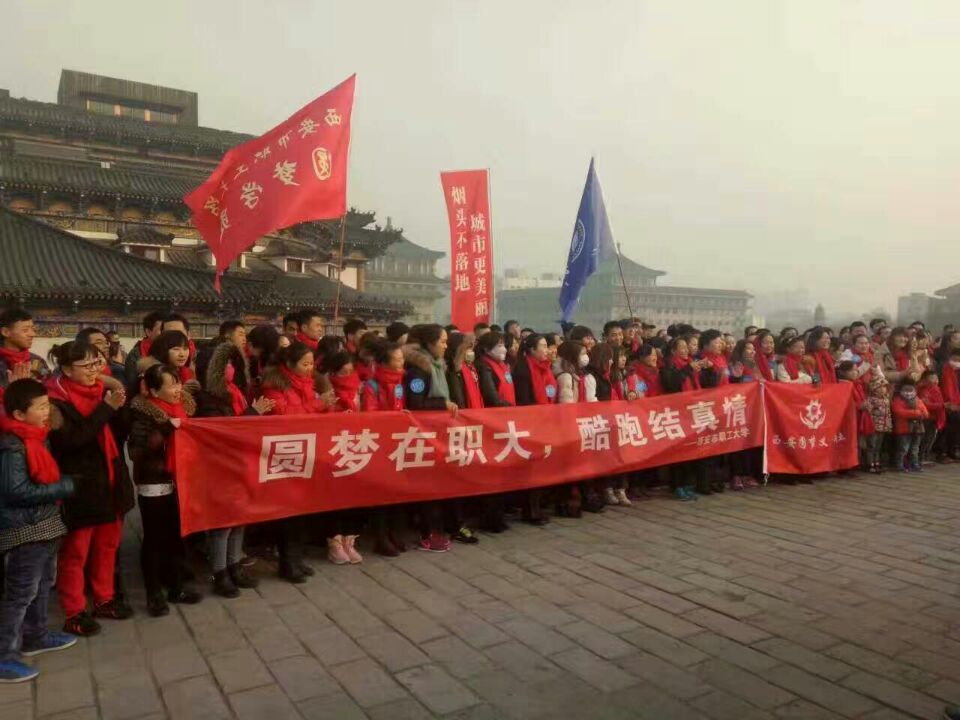 公司2014年度資助青年職工(農(nóng)民工)圓夢大學,職大學員在西安市城墻酷跑